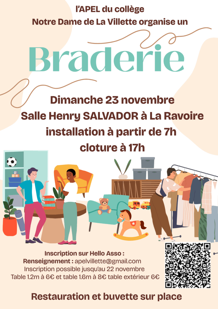 L’A.P.E.L du collège organise une braderie le dimanche 23 novembre 2025.